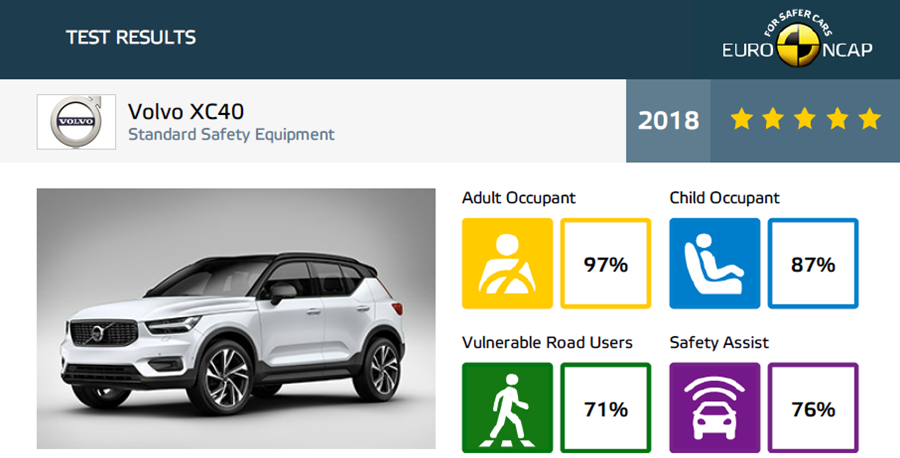 歐盟新車安全評鑑協會 EURO NCAP 每次公佈新車的撞擊結果,車廠可能會有點緊張,成績不好看可是會影響銷售數量,Volvo 不用擔心這個問題,因為 Volvo 常常都是榜上有名的模範生,自家廠區也有自建撞擊測試設備,最新的 XC40 榮獲最高五顆星評價,來看看各項分數是如何。