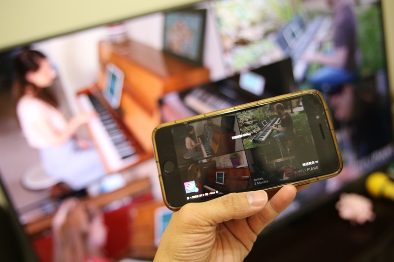 後面測試用的電視為 BenQ 的E系列智慧電視 (型號:E55-700),它支援的無線投影功能包括 AirPlay、Miracast/Wi-Fi Display 和 DLNA,並且內建愛奇藝、CatchPlay、瀏覽器等功能,也能透過 BenQ 商城下載其他 App。