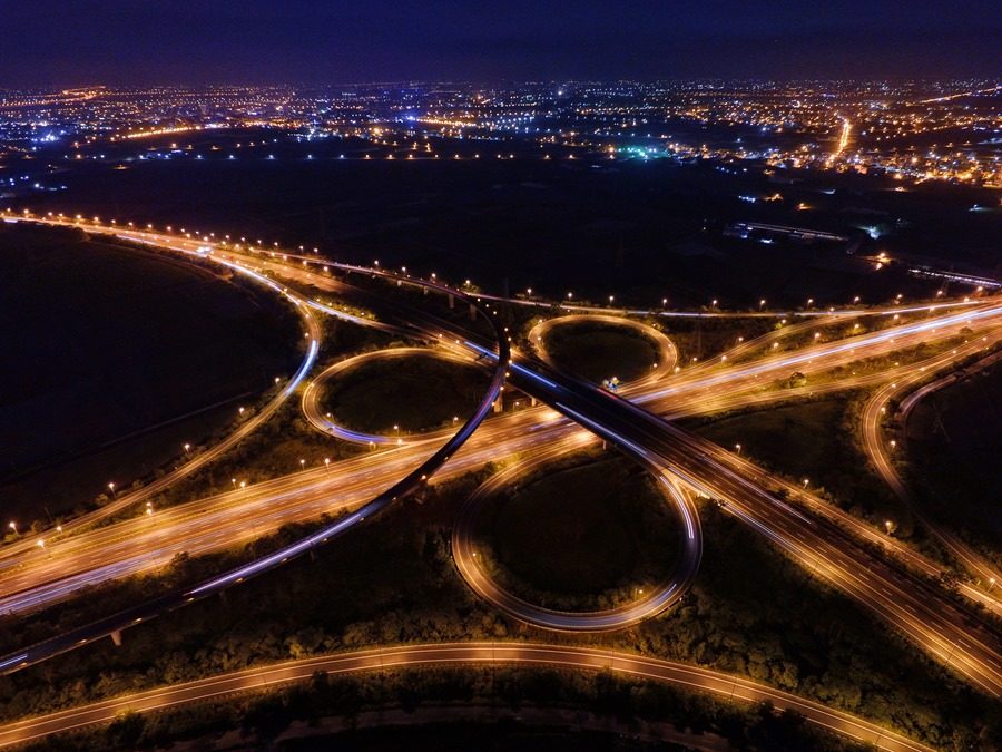 雖然空中拍攝時間已經將快門拉長到4秒,但高速公路的燈光看起來還是覺得偏暗,用 Polarr 來修一下吧!