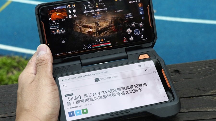 把 ROG Phone 接上後,就可以一邊看攻略、一邊進行遊戲啦!