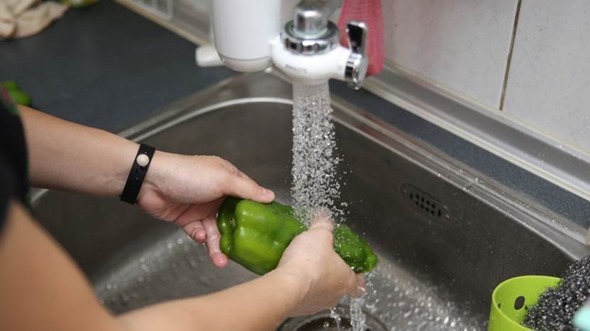 現在每次洗菜之後都會先用灑水方式把菜上的雜質沖掉、浸泡後,再用過濾後的水做個最乾淨的清潔,讓有害殘留物降到最低。飲水機的水現在也都用過濾後的淨水來取代生水了。
