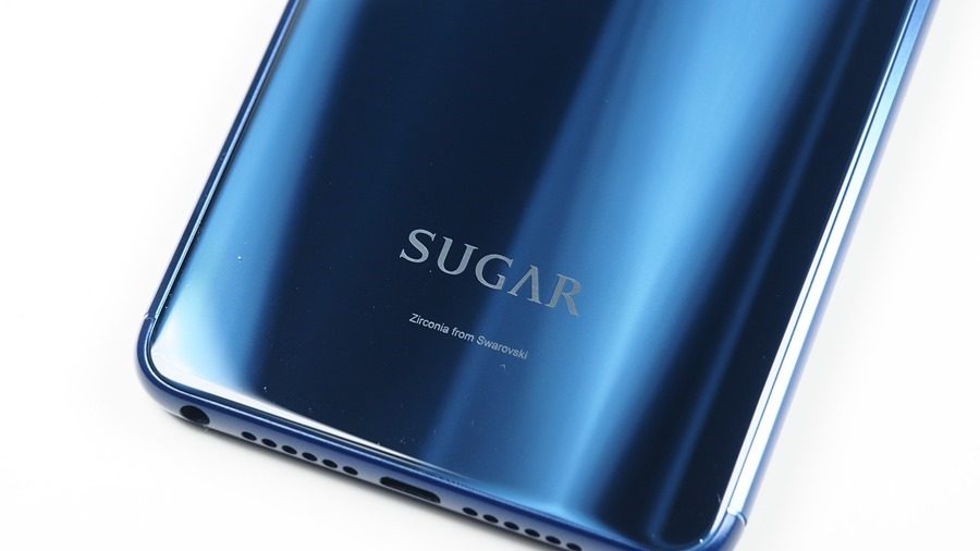 SUGAR S11 背後的反光質感相當有特色,在不同的角度下會呈現不同的折射,頗具特色。因為手機鑲有施華洛世奇 Zirconia 寶石,在背後 SUGAR 標誌下面也特別標示了施華洛世奇的品牌。