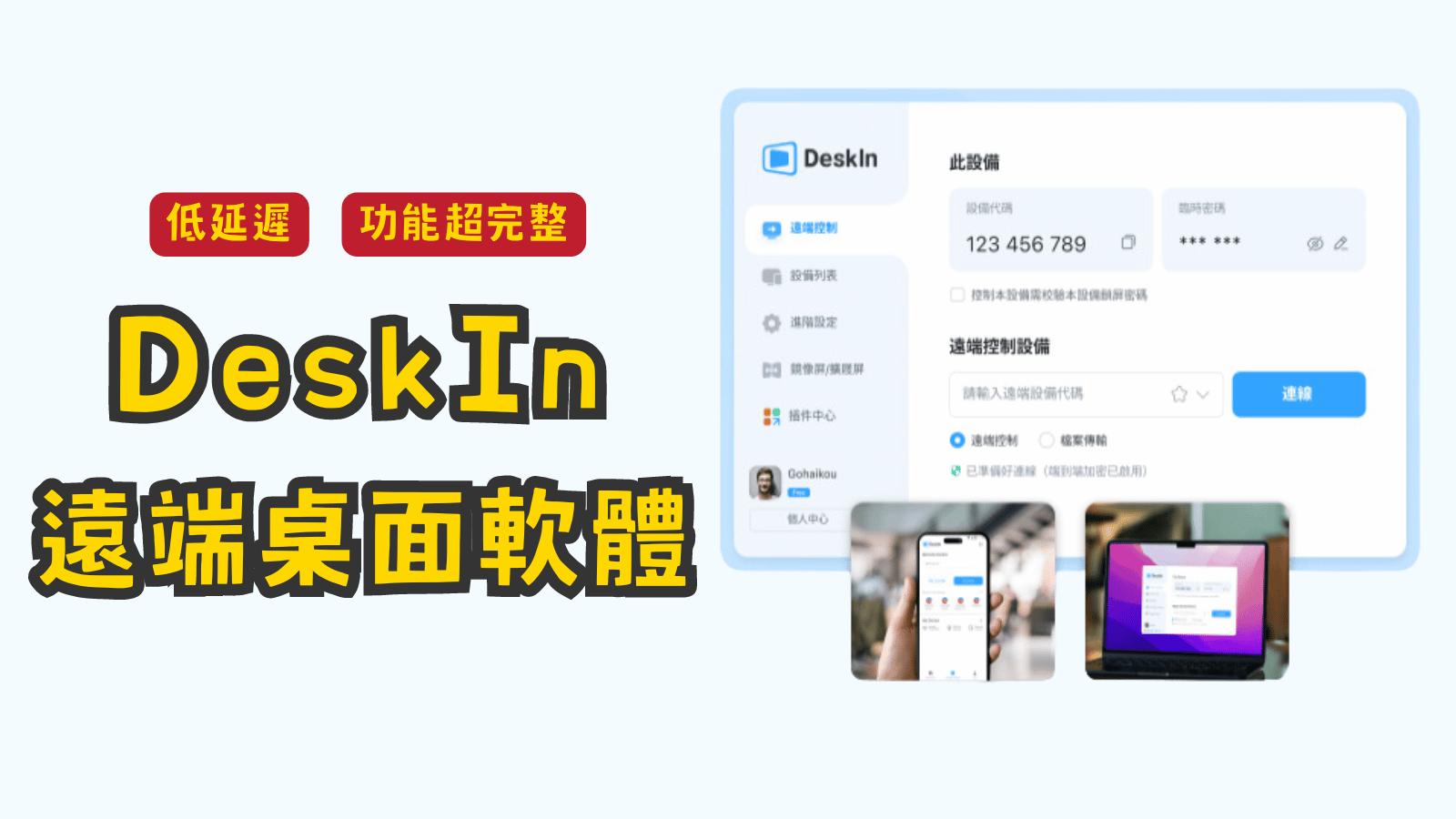 DeskIn 我稱他為遠端桌面軟體的瑞士刀,提供了幾乎其他遠端桌面軟體的功能、多裝置統一管理,只要一個帳號就可以自由在你的所有裝置間移動,而且還有全中文介面,對使用者來說相當方便。