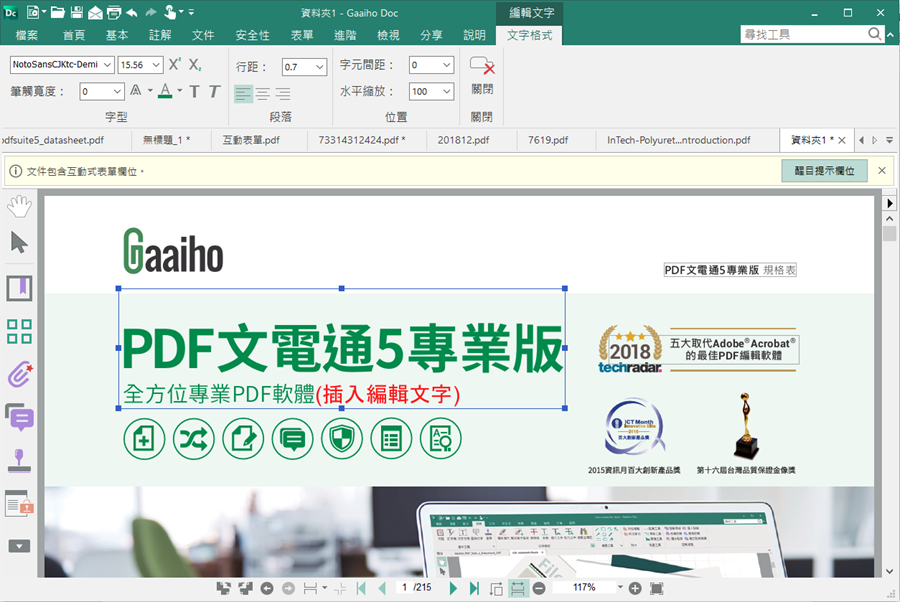 編輯 DOC 檔用 Word 大家一定知道,但是編輯 PDF 檔可能很多人只有重新轉檔的概念,不 知道 PDF 檔也能直接編輯,PDF文電通 5 專業版(Gaaiho)就是因此而生,但還不僅這樣。