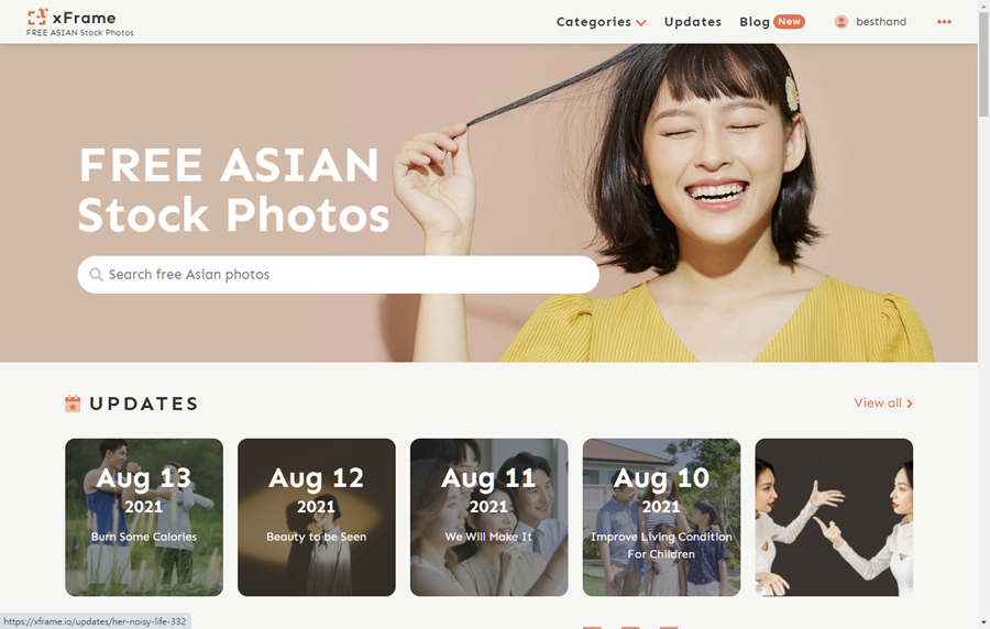 xFrame 是一個以亞洲面孔為主的免費圖庫,目前為止幾乎每天都有新圖更新到系統上,收錄了各種以「人」為主的生活情境,但廠警、風景照片則比較少。