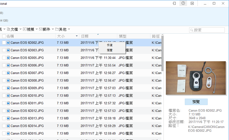 本來只想救援剛才刪除的檔案,但現在卻連格式化過的照片都可以抓出來,真的夠強,不過為了證明掃描能力,剛才刪掉的 360 全景照片還是得找出來才行,結果證明:沒有什麼找不到,真的是太太太好用了。