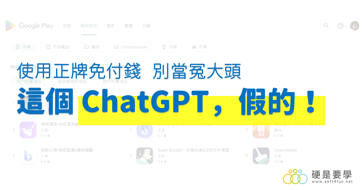 AI 技術最近大爆熱門,尤其又以 ChatGPT 最被關注,有某些居心不良的開發者嗅到了裡面的「錢」味,假冒 ChatGPT 名義開發同名 APP,甚至在使用時要求付費 500~1,200 元的費用「解鎖」無限使用,提醒大家勿受騙上當!