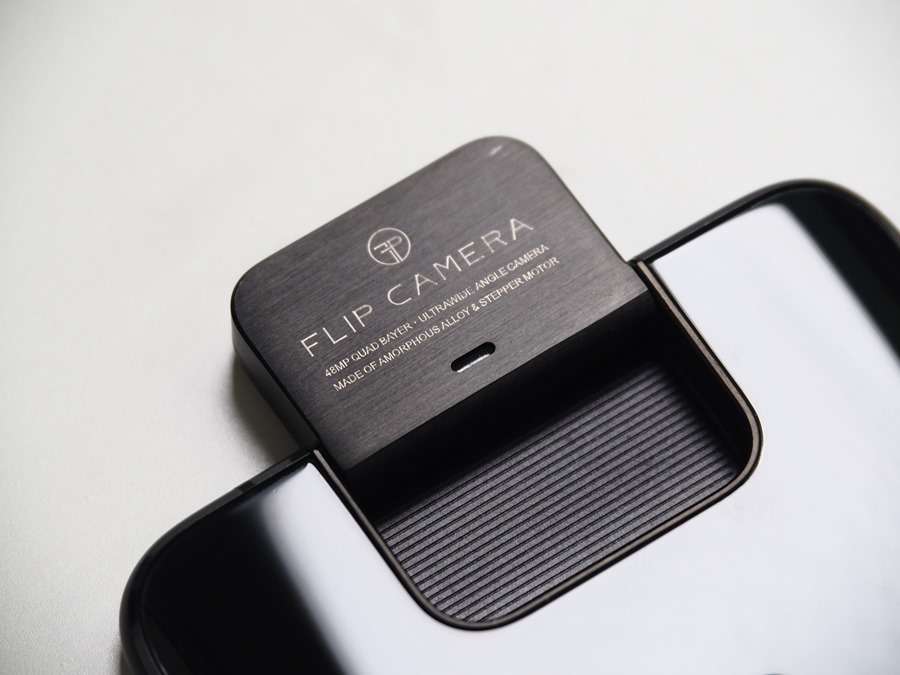 鏡頭翻轉後,後方的 “FLIP CAMERA” 字樣讓手機感覺起來更有質感,也比較沒有那麼生冷僵硬。