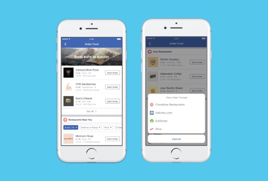 跟上Uber、Google腳步 Facebook也能訂購外送餐飲