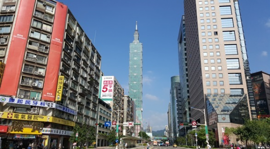 某天在信義路上看見的台北 101,難得一見的好天氣,也難得一見的好空氣。