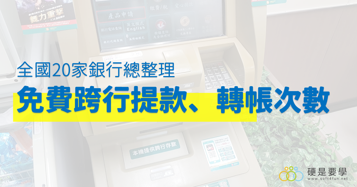 各家銀行跨行轉帳、跨行提款優惠總整理