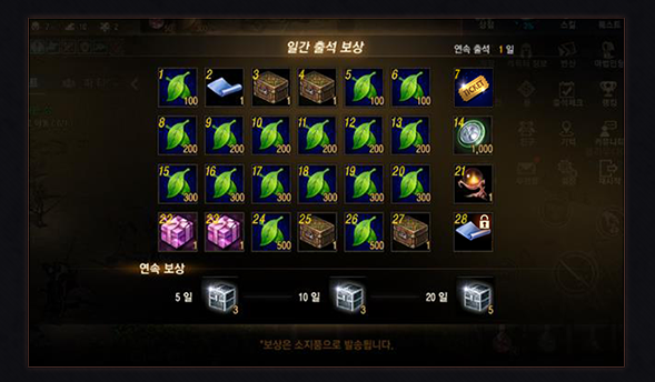 第 7 天的神祕票券可能會搭配某種限時活動進行;第 21 天的回憶蠟燭則是可以重置角色的屬性配點,這個在商城價值 400 鑽啊!底下還有共計 11 個寶箱,推測內容將會是防武卷,或許運氣好一點還有可能有機率取得祝福的卷軸,這麼好康的活動我想一定會驅使玩家上線的!
