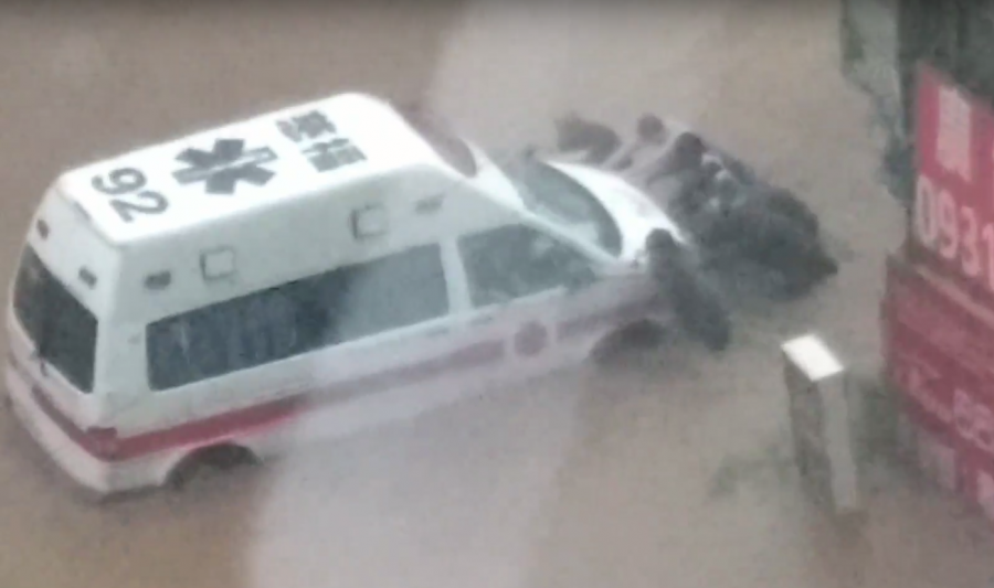 人間有愛,雨勢稍微停歇後,從 BMW 代理商汎德公司突然衝出一票黑衣人,見到路上卡住的車就幫忙推,不只幫了陸上交通一個大忙,也幫了焦急的病患和其家屬,真的應該給他們一個鼓勵啊!