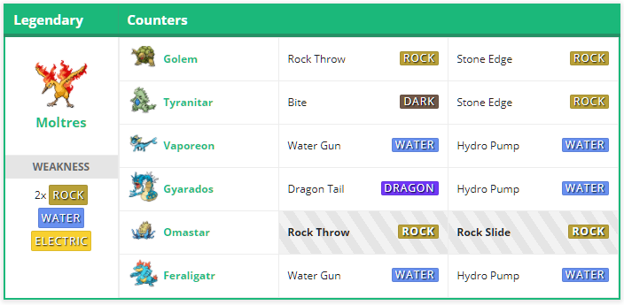 由於火焰鳥的屬性為飛行系+火系,以屬性抗性來說選擇岩石系的寶可夢會對它有最高 2 倍的傷害輸出,否則退而求其次選擇水系或電系也可以有不錯的效果。詳細的攻略可參考這篇文章