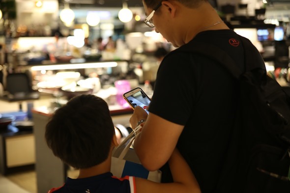 家族出遊也少不了 Pokemon GO 的共同話題,但是電梯上要更注意安全