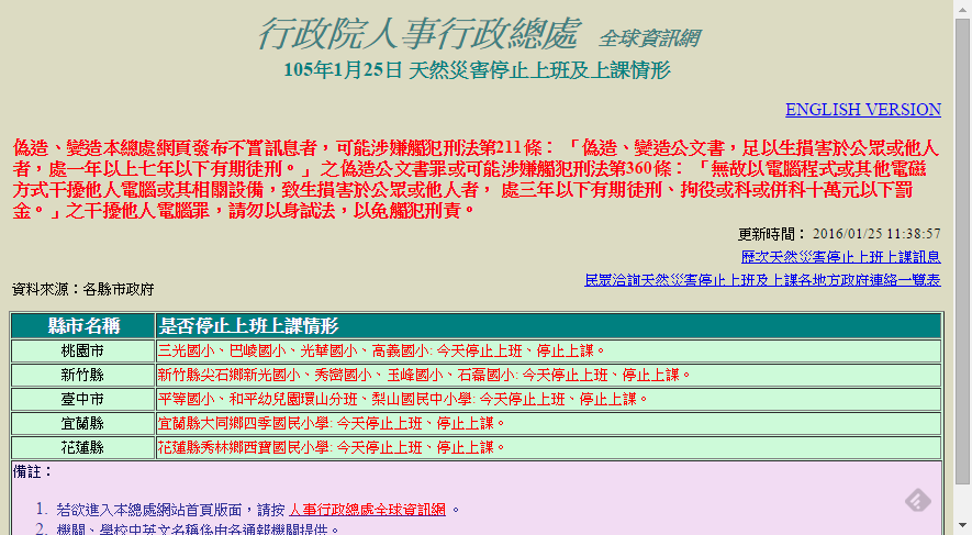 [重要] 勿當謠言散佈者,停班停課資訊請認明 .gov.tw 結尾網址與人事行政總處