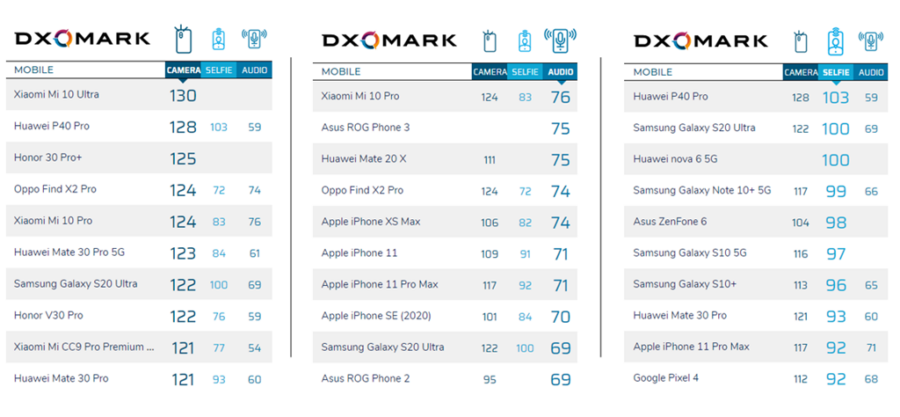 DxOMark手機主鏡頭/自拍/音質上榜排名統計(2020年9月),你喜歡的有在榜上嗎?