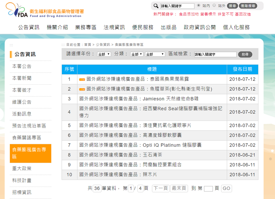 衛福部食藥署在今年 5 月底開始建立「食藥膨風廣告」資料庫,目前短短 2 個月已經累積 36 筆案件。以公家單位的工作模式 (接到檢舉後才立案處理) 都能累積這麼快,可見得這些誇大不實的廣告在臉書上有多麼猖狂。