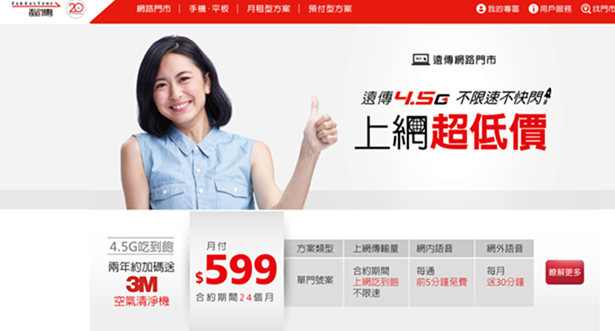 這個方案只要月付 599 元就可享有 4.5G 高速上網,合約期間完全沒有流量限制,吃到飽不限速!常打電話的只要是網內還有前 5分鐘內免費優惠,網外還贈送 30 分鐘,想當初為了買手機被其他電信綁了30個月的吃不飽方案,現在這方案真的超划算的!3M空氣清淨機的售價一台網購也要將近 4,190 元,現在直接新申辦門號或攜碼到遠傳搭配這個方案就可免費獲得,要俗、要好一次滿足~