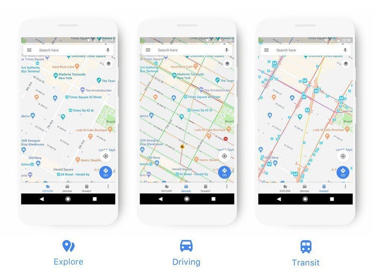 舉例來說,當使用者在駕駛期間最需要的資訊不外乎路況或加油站,因此調整之後的 Google Maps 不但會直接在地圖上顯示目前路況,同時也會凸顯加油站的位置;另一方面,當在搜尋大眾運輸工具,地圖中顯示的資訊就會凸顯大眾運輸的路線和站點位置。