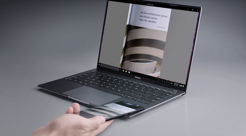Share OneHop 是基於 Huawei Share 的技術應用,華為手機幾乎都內建這項功能,而今年華為將該技術搬到最新在 MWC 上發表的 MateBook X/13/14 系列筆電上,透過 NFC 配對後將手機置於筆電感應區就會立刻啟動傳送檔案,傳送速度最高達 30MB/s,傳送照片幾乎可說是瞬間完成,這項技術除了不僅支援照片傳送,還支援影片和文件。