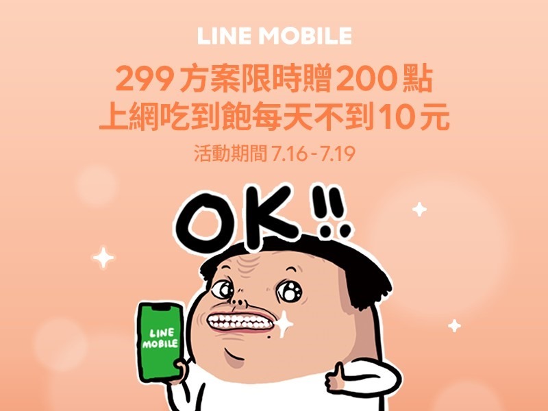 只有 4 天!LINE MOBILE 299 吃到飽限時快閃加碼,每天不到 10 元