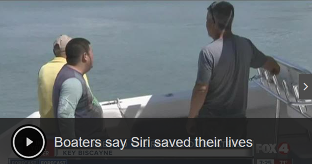 當它們透過 Siri 撥打電話後,海岸巡防單位透過直升機找到他們,並且留下一位潛水人員陪伴他們直到邁阿密警方的救援船隻到達。