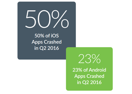 根據報告顯示,2016 年 Q2 iOS 的狀況相當不理想,整體的當機率達到 58%,而絕大多數的問題發生在 iPhone 6 上,其次是 iPhone 6S,原因與 Apple 今年四五月推出的 iOS 9.3.1 與 9.3.2 兩版本有關,它們研究發現在更新之後出現電量快速消耗、App時常崩潰、藍牙通話音質變差與 Wi-Fi 連接問題等等,種種小狀況導致第二季調查結果不甚理想。