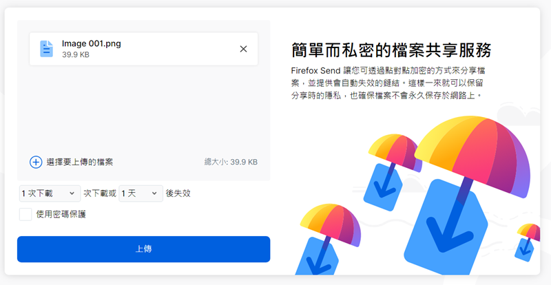 Firefox Send 免費檔案分享服務,可設定密碼、限時、限次數多種下載規則 Image-033