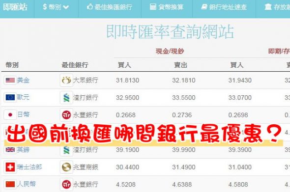 旅人必備!出國前換外幣哪間銀行最優惠? ContentParty 9 年前 換外幣是出國時大家一定會做的事情,雖然說機場有台灣銀行可換外幣,可是搭乘很早班機的旅客根本換不到,到日本玩時帶上有合作的台灣提款卡也能在日本當地提領日幣,但提領時也是有手續費的產生,艾倫出國的習慣是提早到銀行先換些外幣帶在身上,沒帶錢在身上實在很沒安全感,然後錢包裡在放張信用卡就搞定囉! 換外幣前艾倫會蠻密集的查看匯率的狀況,能便宜一點是一點囉!艾倫最近看到了「即匯站」,各…