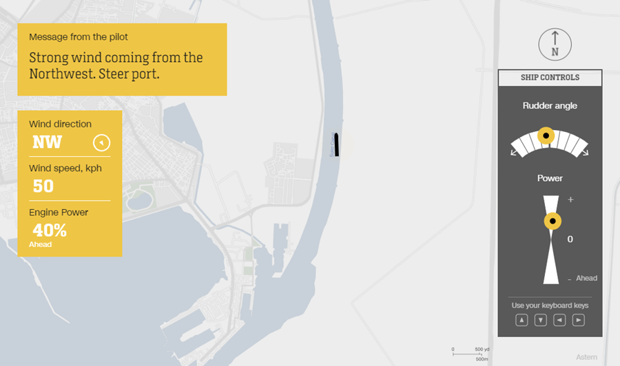 長榮海運貨輪卡點蘇伊士運河 (Suez Canal) 造成全球船運大受影響,全世界都在關注,CNN 為了讓更多人知道像這麼大的船隻在碰到劇烈側風時駕駛難度有多高,開發了蘇伊士運河模擬器,雖然是簡單的模擬,但玩家們還是可以體驗看看在沒有剎車、沒有地面磨擦力的狀況下要怎麼讓貨輪安全度過狹窄的河道。